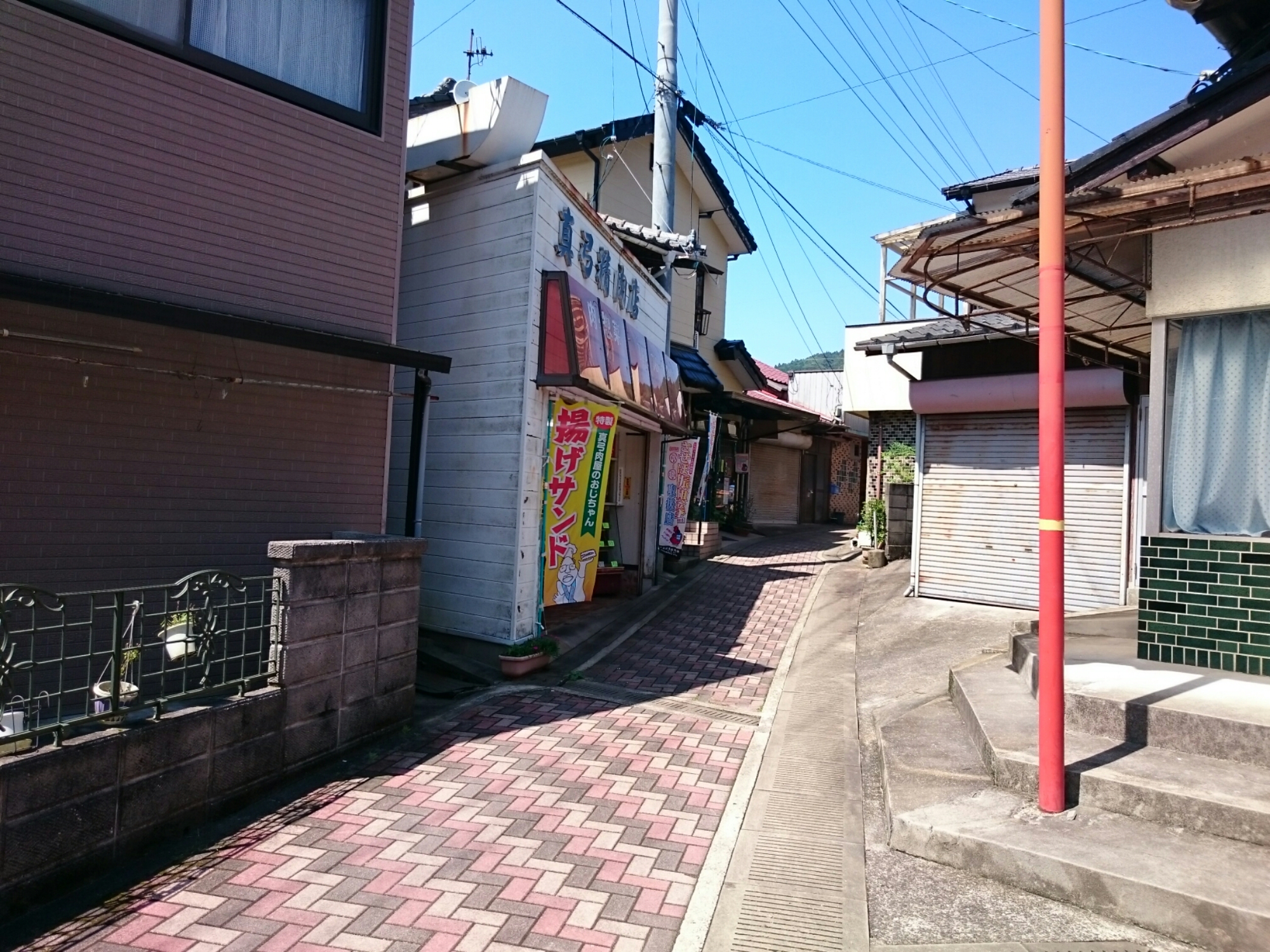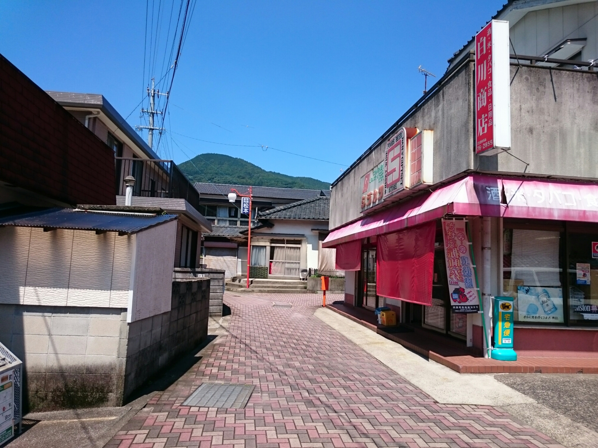 カーナビに真弓精肉店を入力すると白川商店の脇から路地を入りなさい!と指示してくるのですが、けっこう狭い道なので、ここからは歩いて真弓精肉店まで行きます。